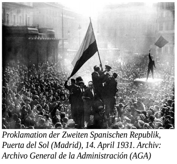 Anknüpfend an diesen Perspektivenwechsel – und da sich am 14. April die Ausrufung der Zweiten Spanischen Republik zum 95igsten mal jährt – laden wir Euch ein, diesen Jahrestag gemeinsam mit uns zu begehen.