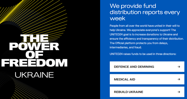 Wähle, was dir wichtig ist: Waffen, Medizin, Wiederaufbau… Crowdfunding- Seite der ukrainischen Regierung